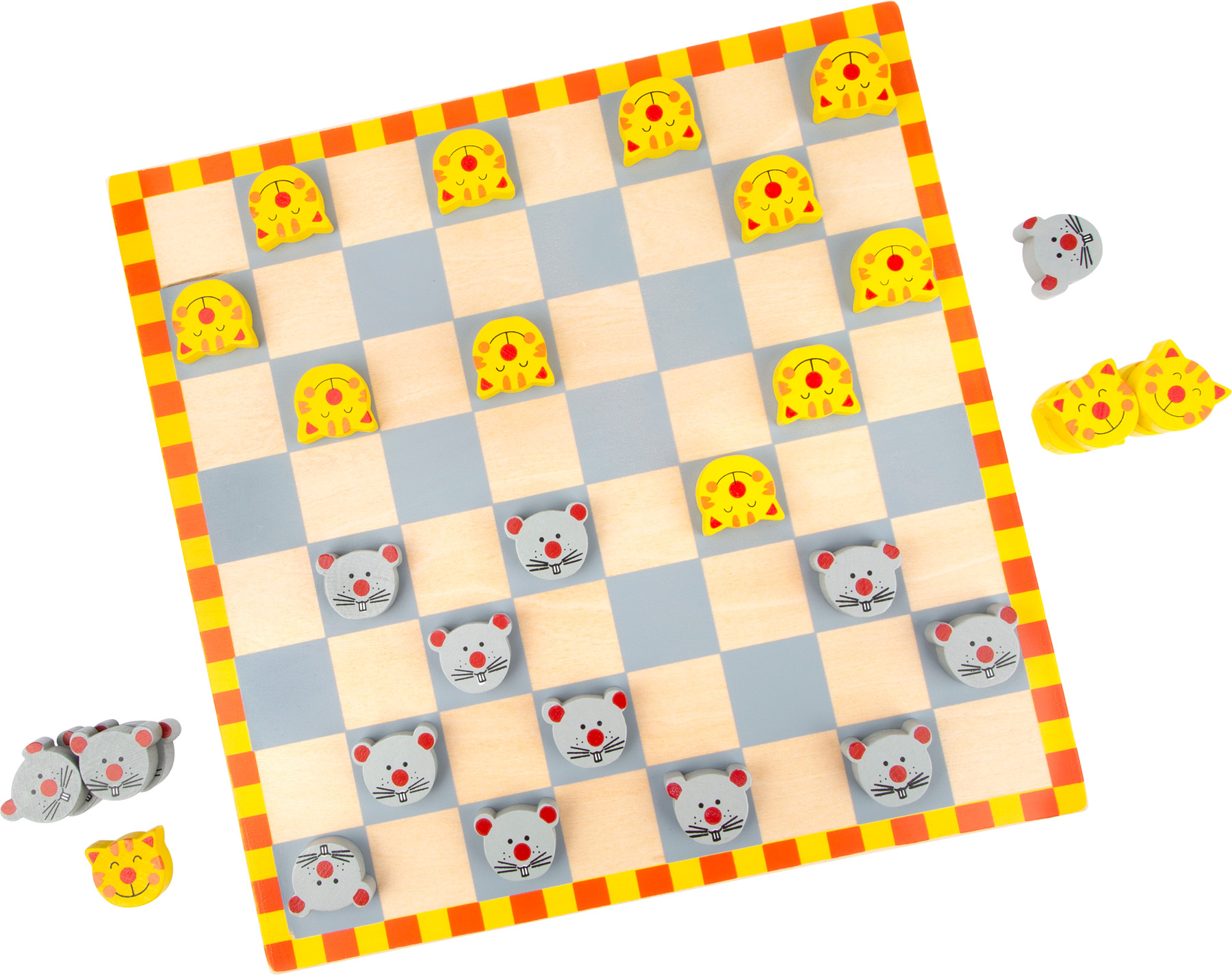 Ein klassisches Spiel in kindgerechtem Design! Die grau und gelben Katzen- und Mäuseköpfe sind gerade für die Kleinen interessanter als einfache Spielsteine! Tolles Spiel zur Förderung der Logik und des taktischen Denkens!