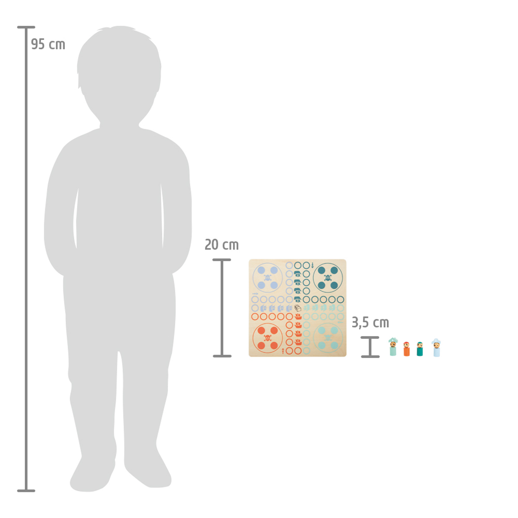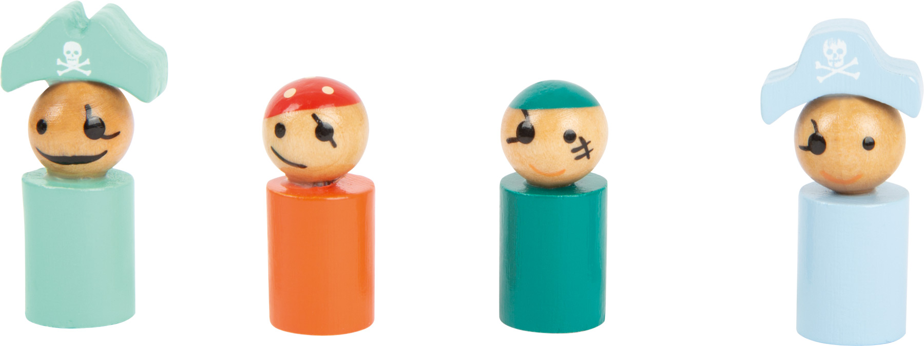 Freibeuter aufgepasst! Dieses Ludo aus Holz bringt den Seeräuber-Spaß aufs Spielbrett. Ziel ist es, seine Piratenbande als erstes vollständig aufs Piratenschiff zu bringen. Der Würfel gibt an, um wie viele Felder eine Spielfigur vorwärts ziehen darf. Dabei wird spielerisch das Zählen geübt. Die kindgerecht gestalteten Spielfiguren sind detailliert ausgearbeitet. Welcher Seeräuber zwingt die anderen in die Knie? Dieses klassische Ludo im trendigen Design und kompakten Format darf in keinem Kinderzimmer fehlen!