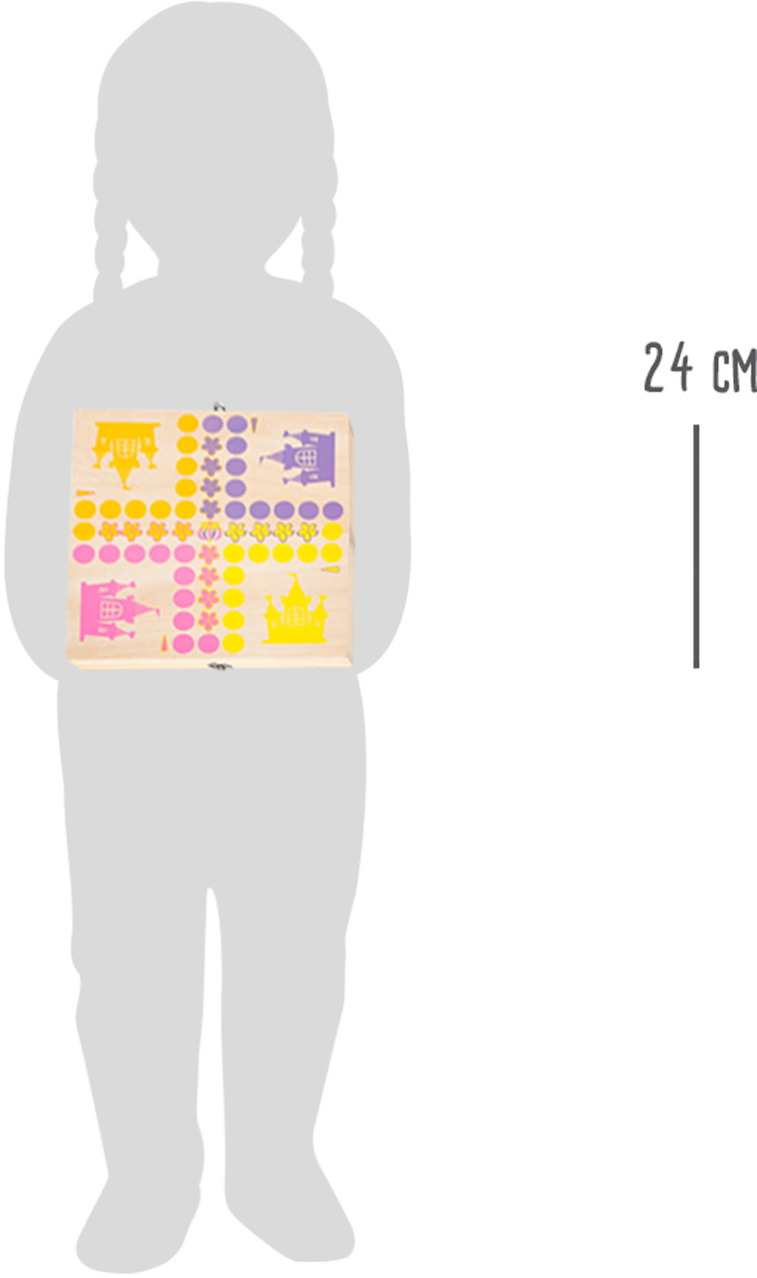 Welche edle Prinzessin schafft als Erste den Weg zur Krone? Vier verschiedenfarbige Prinzessinnen aus FSC® 100%-zertifiziertem Holz warten nur darauf, den Weg auf sich zu nehmen. Der Würfel zeigt an, wie viele Schritte sie voranschreiten dürfen. So lernen Kinder ganz spielerisch das Verständnis für Zahlen und trainieren Sozialkompetenz. Die praktische Transportbox ist verschließbar und ist auf Reisen ein praktischer Begleiter.