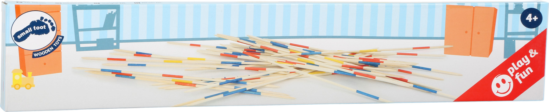 41 Spielstäbe aus Holz schulen die Geschicklichkeit der Spieler drinnen und draußen. Wer glaubt, mit den großen Stäben ist es einfacher als mit den kleinen, wird schnell eines Besseren belehrt - denn nur geschickte und geduldige Hände werden hier viele Stäbe sammeln!