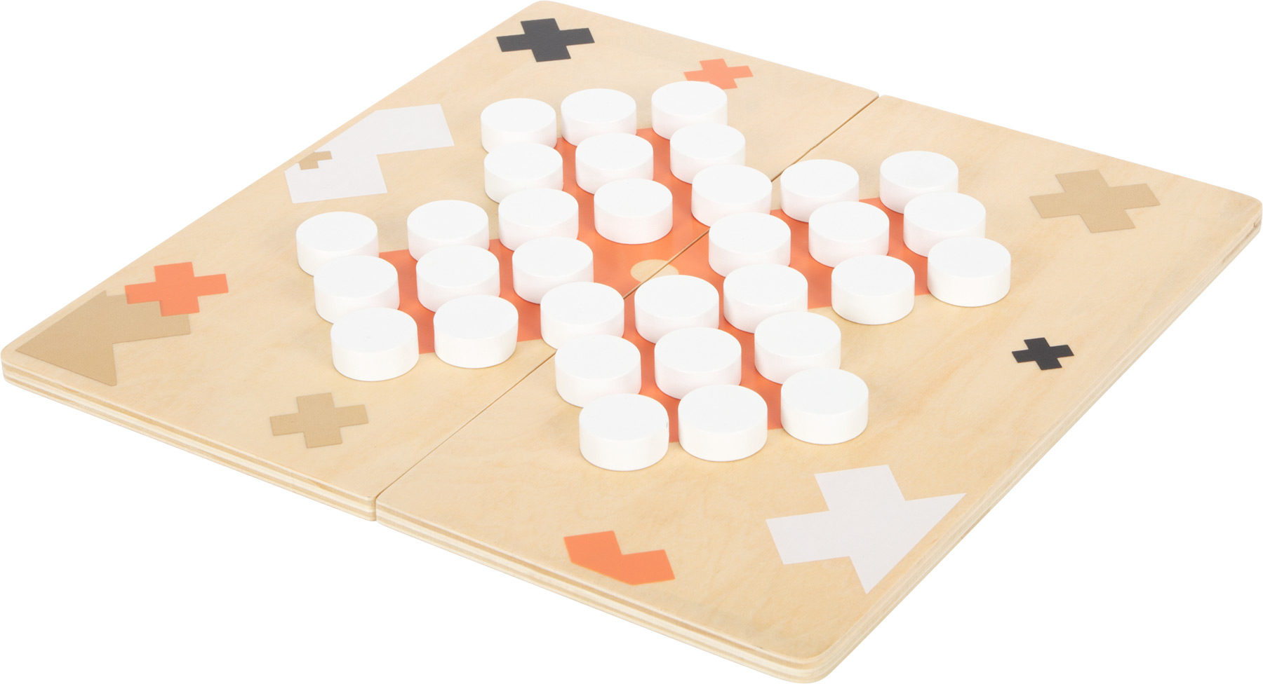 Diese beiden Spieleklassiker Mühle und Solitär überzeugen durch ihren eleganten, modernen Look und sind garantiert der Hingucker beim Spieleabend! Die raffinierten Gold-Akzente kommen in Kombination mit Terrakotta, klarem Schwarz/Weiß und viel sichtbarem Holz besonders gut zur Geltung. Das 2-in-1 Spielbrett ist zweigeteilt und somit platzsparend verstaubar. Eingelassene Magnete sorgen dafür, dass beide Spielbretthälften fest beieinander bleiben. Mit hochwertigem Spielkarton zur Aufbewahrung. Ein durchgestyltes Gesellschaftsspiel im reduzierten Design-Look. Die soliden Spielsteine aus Holz fühlen sich beim Spielen besonders angenehm an.
