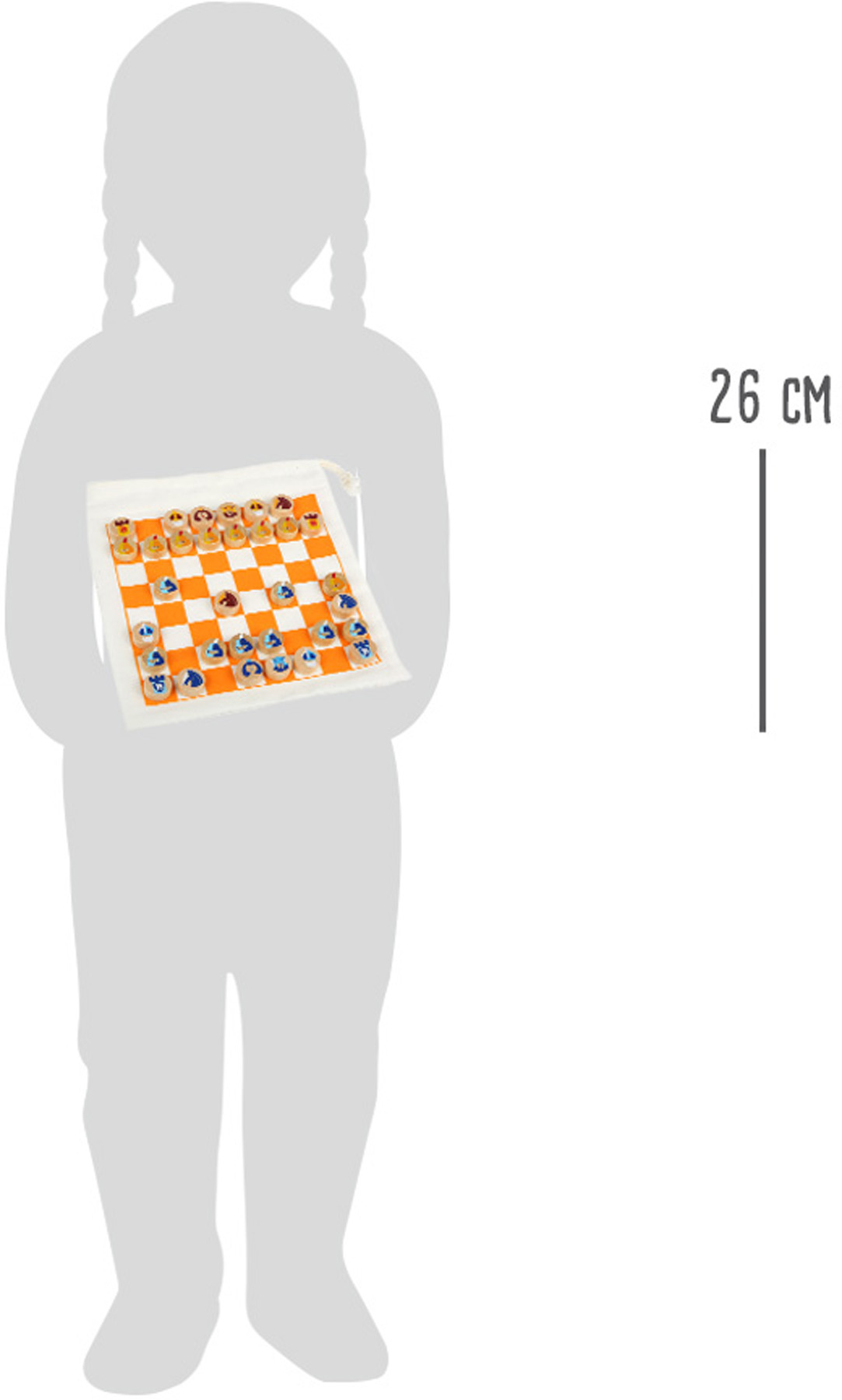 Strategie im Beutel! Gegen eine Partie Schach auf Reisen ist nichts einzuwenden. Der Beutel ist mit der passenden Spielfläche bedruckt und dient als Aufbewahrung für die Spielsteine aus FSC® 100%-zertifiziertem Holz. Das Tolle: Das Spielfeld kann auch für ein Dame-Spiel verwendet werden. Wer macht den ersten Zug?