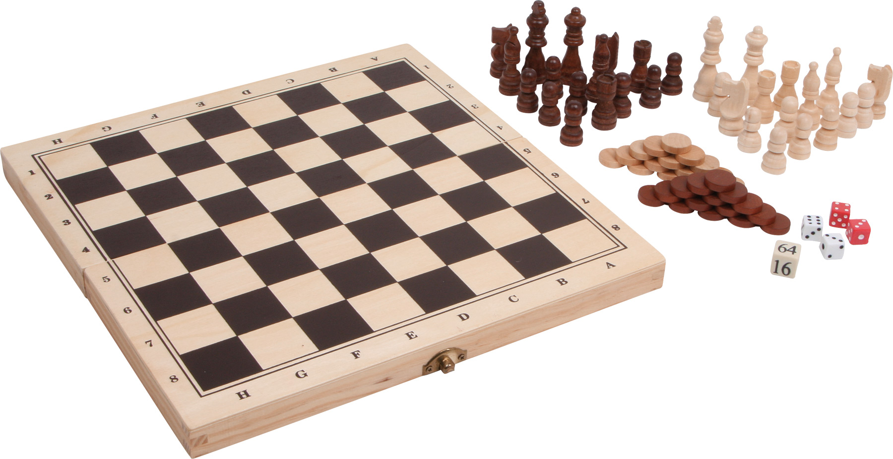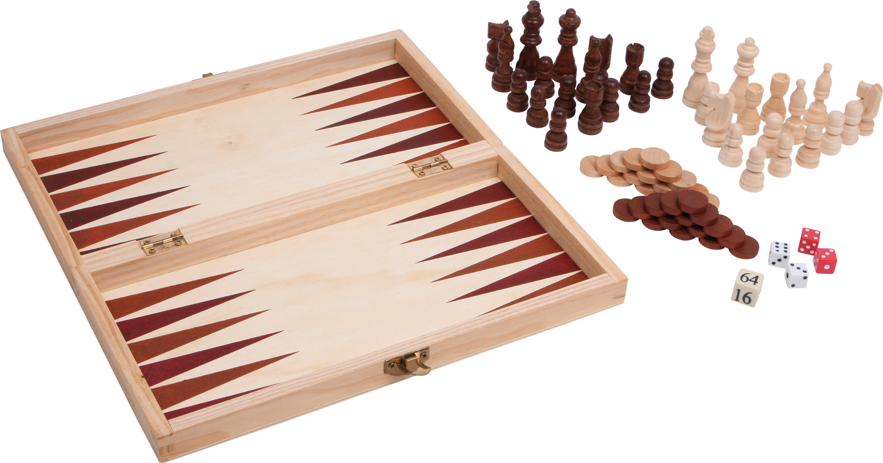 Diese schöne Spielesammlung aus Holz beinhaltet Spiele wie Schach, Dame oder Backgammon. Perfekt für einen regnerischen Spielenachmittag mit viel Abwechslung.