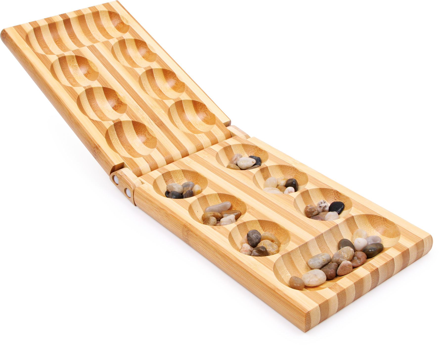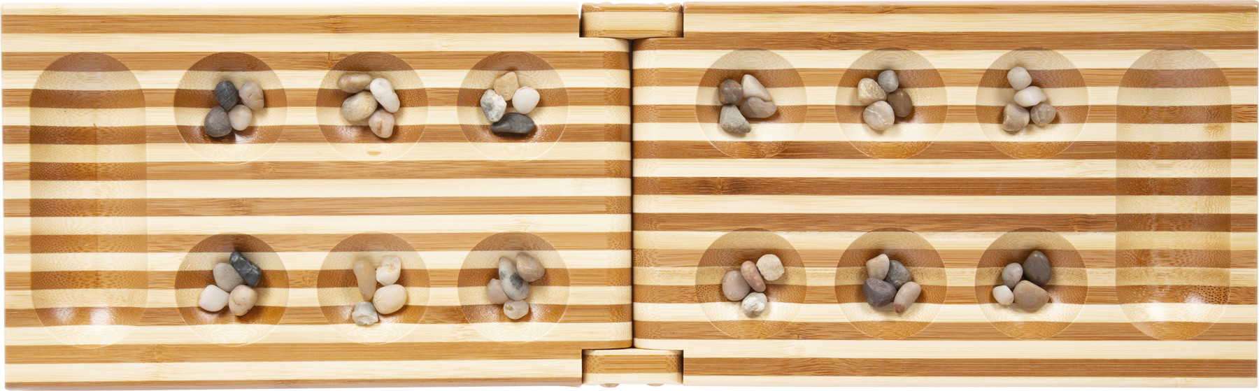 Schön und praktisch für unterwegs! Diese hochwertige Box aus Bambus mit innenliegenden Mulden enthält das uralte, aber zeitlos spannende Strategie- und Logikspiel „Kalaha“. Zwei Spieler ringen durch Umverteilung der 48 Natursteine um den Sieg. Da kommt garantiert keine Langeweile auf! Ein spannendes Spiel, bei dem derjenige der Gewinner ist, der die meisten Natursteine in seiner Gewinnmulde hat.