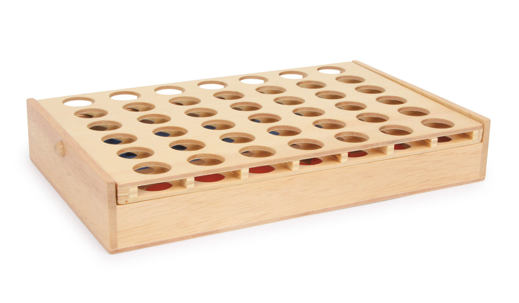 Eine hölzerne Version des spaßigen Spieleklassikers. Ziel des Spiels ist es, als Erster die Spielsteine aus Holz in eine Vierer-Reihe zu bekommen. Ob senkrecht, waagerecht oder diagonal spielt dabei keine Rolle. Ein Spiel für Jung und Alt mit hohem Spaßfaktor! Eine hölzerne Reiseversion des beliebten Klassikers in einer bedruckten Transportbox. Auch die Spielsteine sind aus Holz. Die Spielfläche lässt sich zum Ausleeren schräg stellen.