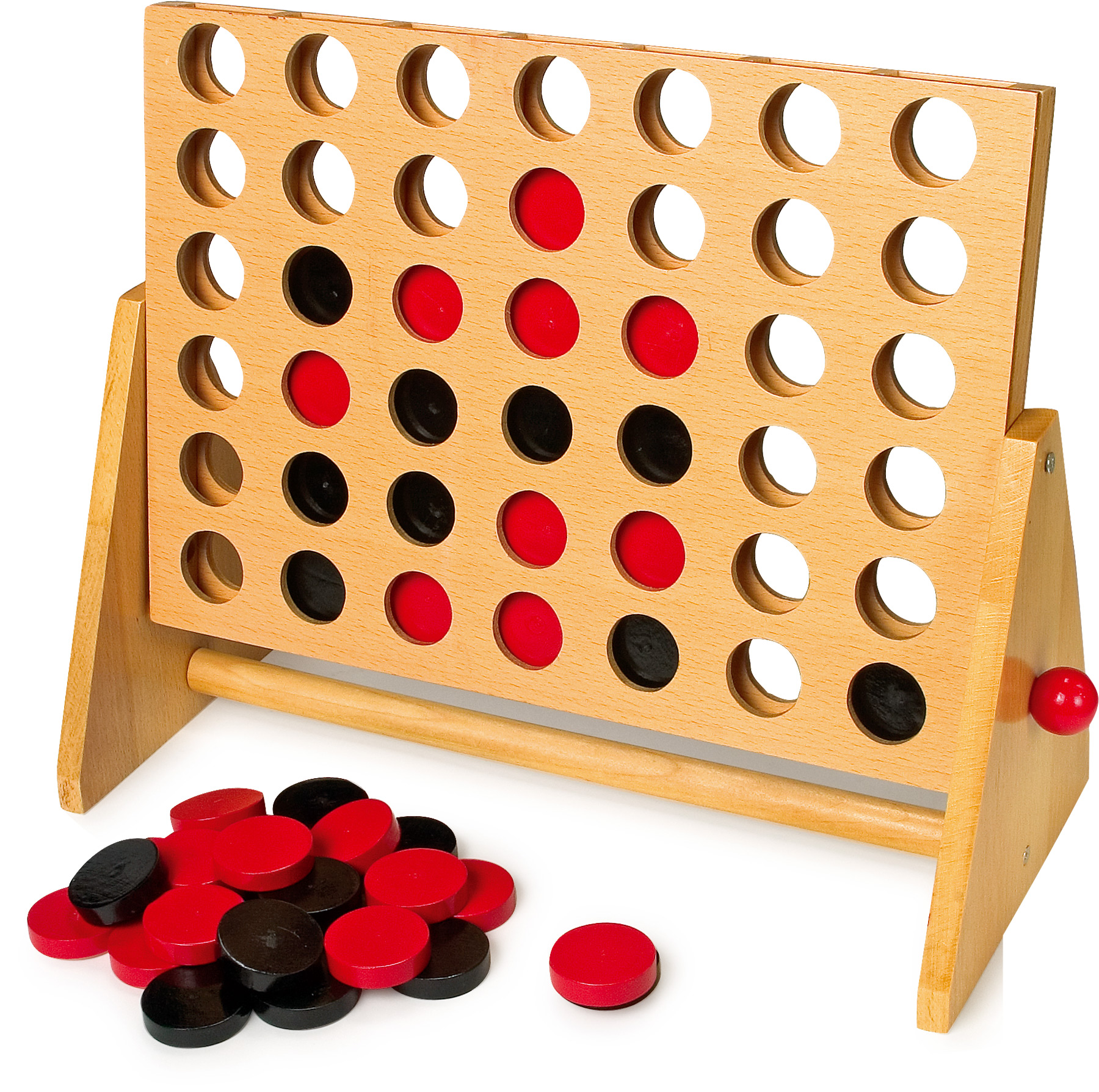 Eine große Ausführung des bekannten Spieleklassikers für zwei Personen. Das Strategiespiel für kleine und große Kinder schult spielerisch das Logikverständnis! Wenn zwei Spieler gegeneinander antreten und versuchen, mit ihrer Farbe waagerecht, senkrecht oder diagonal vier Steine in eine Reihe zu bekommen, ist der Spielspaß vorprogrammiert! Wer macht als erstes eine Reihe voll? Sobald das Spiel beendet ist, wird der Rahmen auf die Kopfseite geschwenkt und die Steine fallen heraus, so dass direkt im Anschluss eine Revanche gespielt werden kann!