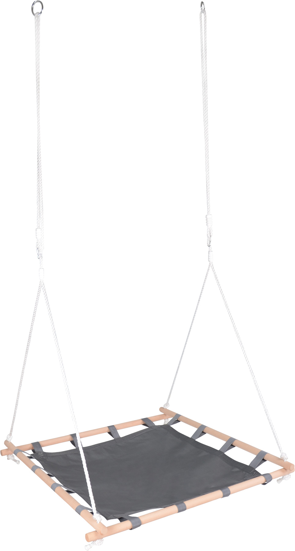 Schaukelspaß im Quadrat! Diese quadratische Nestschaukel im modernen Design ist mit ihrem stabilen Rahmen aus naturbelassenem Holz ein Hingucker! Die große, bequeme Schaukelfläche aus strapazierfähigem und leicht zu reinigendem Material bietet mehreren Kindern ausreichend Platz zum Schaukeln, Toben und Relaxen. Alle können mit drauf, solange der Platz im Nest reicht! Nestschaukeln laden dazu ein, in einem Moment so richtig zu entspannen und im nächsten Moment richtig Spaß zu haben. Vom ruhigen Vor- und Zurückschwingen bis hin zum Höhenflug ist alles erlaubt. Holz als nachhaltiges Material macht auch hierbei eine gute Figur!