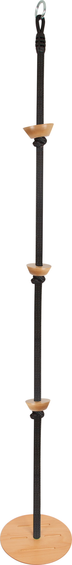 Hoch hinaus! Diese hochwertige Kombination aus Tellerschaukel und Kletterseil vereint Schaukel- und Kletterspaß und macht auch optisch einiges her! Das Kletterseil in edlem Schwarz verfügt über drei runde Fußtritte aus robustem Vollholz, die Kindern das Klettern erleichtern, während die Tellerschaukel am unteren Ende des Kletterseils zum Schaukeln einlädt. Rillen auf der Sitzfläche sorgen für Rutschfestigkeit. Mit stabilem Ring zur Aufhängung an Klettergerüst oder Schaukel. Wer ist als erstes oben? Ob indoor oder outdoor – mit dieser Schaukel sind Sport und Action garantiert. Das Kletterseil eignet sich auch ideal als Aufstieg in ein Baumhaus. Ganz nebenbei trainieren Kinder Körperbeherrschung, Geschicklichkeit und Kraft. Auch für Erwachsene geeignet.