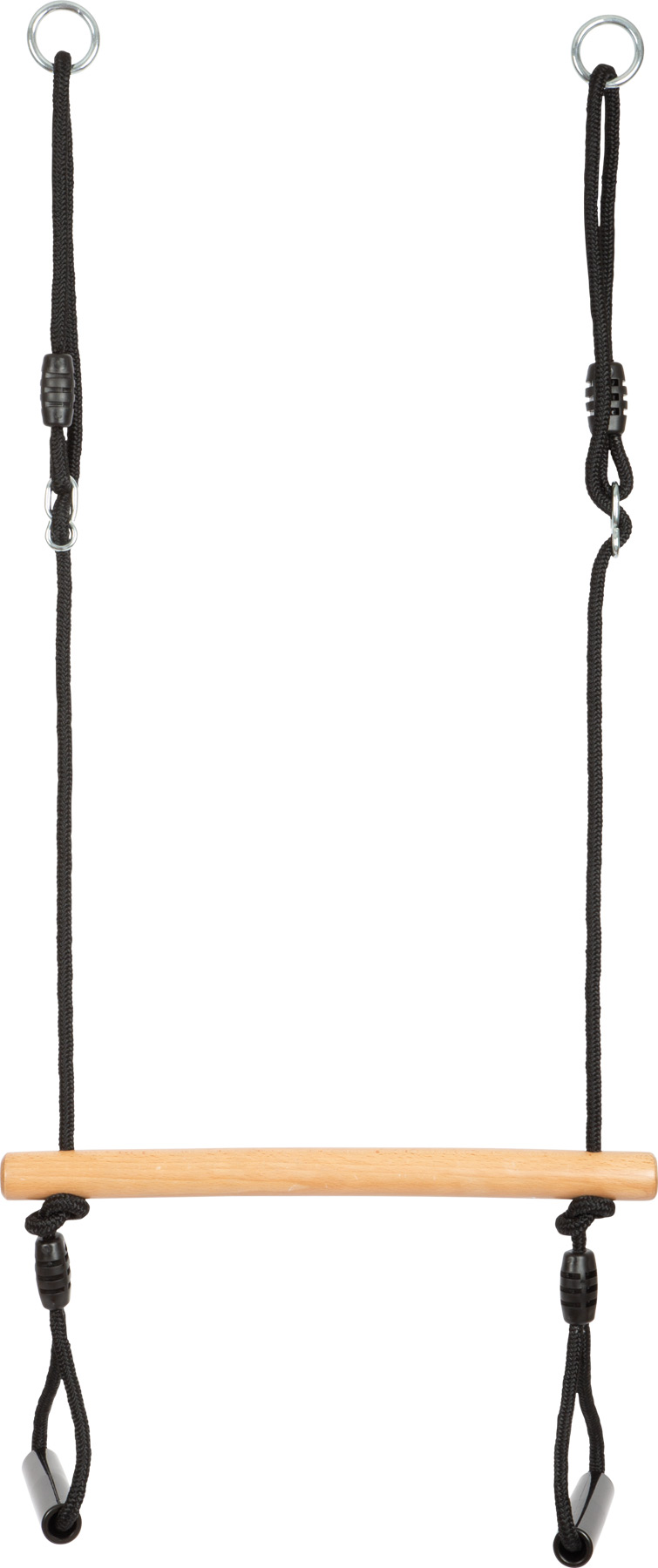 Schaukeln oder turnen? Mit dieser Trapezschaukel mit Turnringen geht beides! Während das Holztrapez als Sitz- oder Turnstange benutzt werden kann, bieten die Turngriffe kleinen Akrobaten die Möglichkeit, sich nach Lust und Laune auszuprobieren. Die Besonderheit: Die Trapezstange sorgt dafür, dass der Abstand zwischen den Ringen beim Turnen konstant bleibt. Ideal für Turnanfänger. Mit längenverstellbaren Seilen und Metallringen für ein schnelles Auf- und Abhängen der Trapezschaukel. Trapez aus naturfarbenem, lasiertem Vollholz und Seile aus wetterbeständigem Material – ideal für den Outdoor-Bereich. Aufgrund der Größe und Belastbarkeit auch für Erwachsene geeignet. Die 2-in-1 Kombination aus Trapez und Turngriffen ermöglicht abwechslungsreichen Schaukel- und Turnspaß und trainiert nebenbei Körperbeherrschung, Kraft und Balance. Das Zusammenspiel aus hochwertigem Vollholz und edlen, schwarzen Kunststoffseilen macht die multifunktionale Schaukel optisch zu einem echten Hingucker im Innen- und Außenbereich.