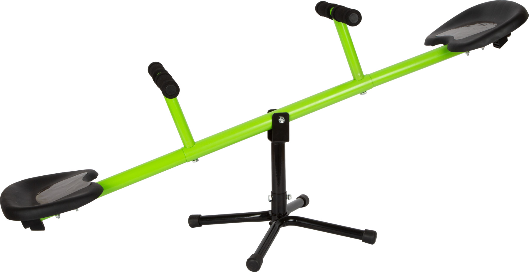 Riesenspaß für drinnen und draußen bietet den Kindern diese Wippe aus rot-grün lackiertem, stabilem Metallrohr! Griffe aus Moosgummi geben den Händen sicheren Halt und Kunststoffkappen an den Füßen und unter den Sitzschalen schonen den Boden. Das geringe Gewicht von nur ca. 3,5 kg erleichtert das Umsetzen und Verstauen!