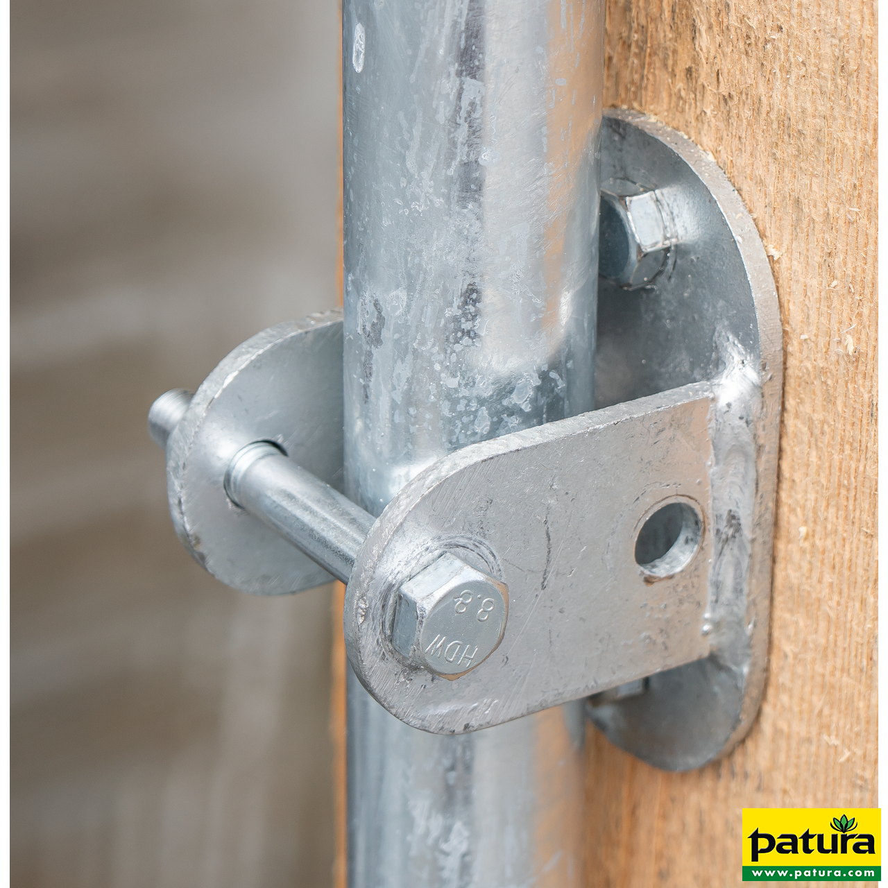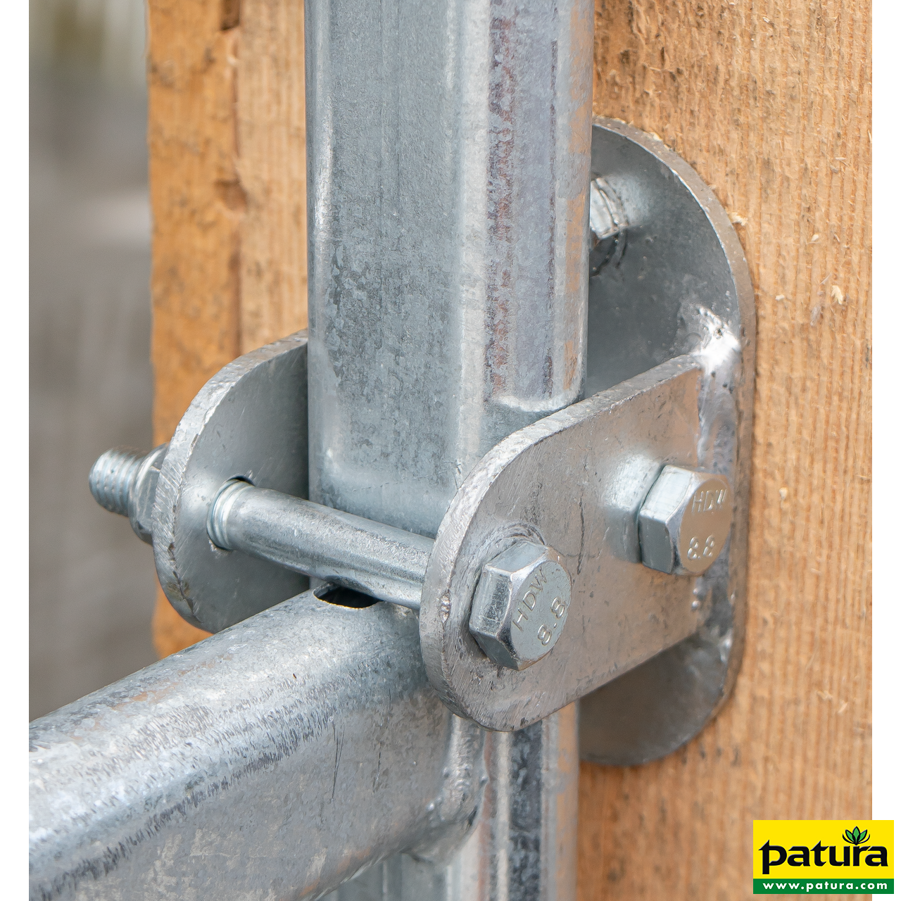 Um zu vermeiden, dass Pferde unter dem untersten Rohr hindurchtreten, empfehlen wir bei dauerhaftem Einbau die Panels so zu befestigen, dass sie nicht angehoben werden können. Dies ist z.B. mit den Anschraubteilen für Panels durch Fixierung am Boden möglich. Zur optimalen Klemmung verwenden Sie, zur Montage an Wand oder Boden, Schrauben mit Sechskant-Schraubenkopf.
