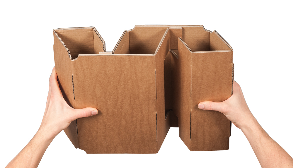 Stanzzuschnitt, 3er Einlage für Flaschen, braun, 161x360mm, ECOline