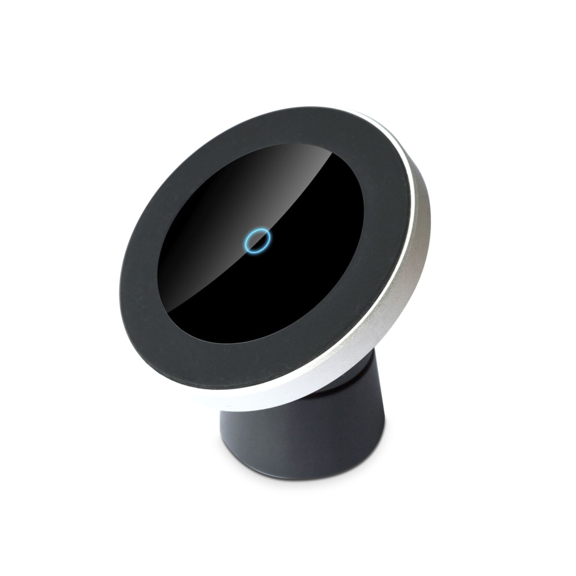 Praktischer Magnethalter mit Clip zur Lüftungsgittermontage und Klebesockel zur Montage auf dem Armaturenbrett.