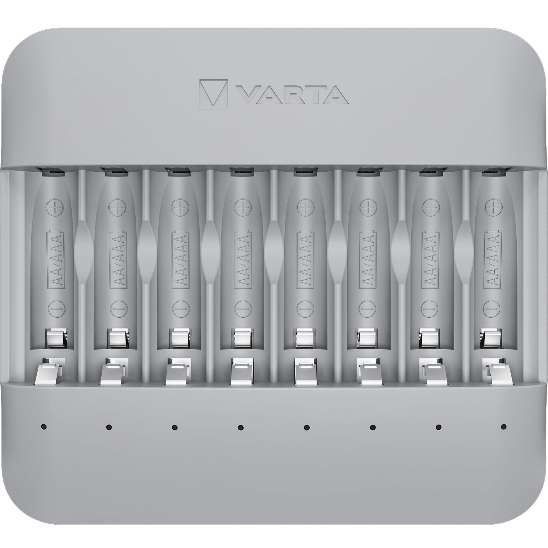 Der VARTA Eco Charger Multi Recycled ist ein Ladegerät, das maximale Nachhaltigkeit mit modernen Funktionen bietet. Dieses Ladegerät ermöglicht eine vollständige Akkuladung in nur 1 Stunde, und es lädt bis zu 8 AA oder AAA-NiMH-Akkus gleichzeitig.
