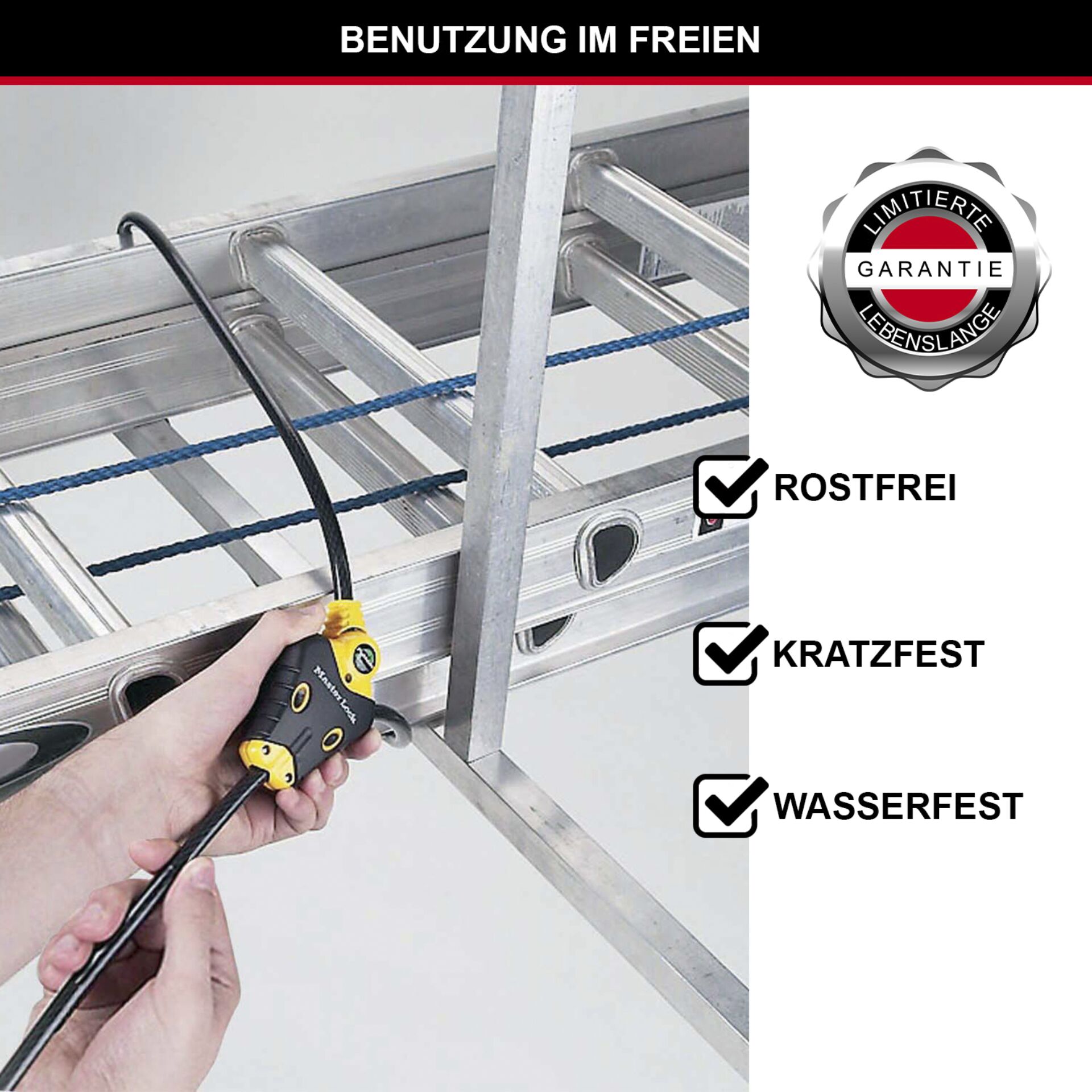- Verschlussmechanismus zieht das Kabel in jeder Position von 30 cm bis 1,8 m für unbegrenzte Verriegelungspositionen straff