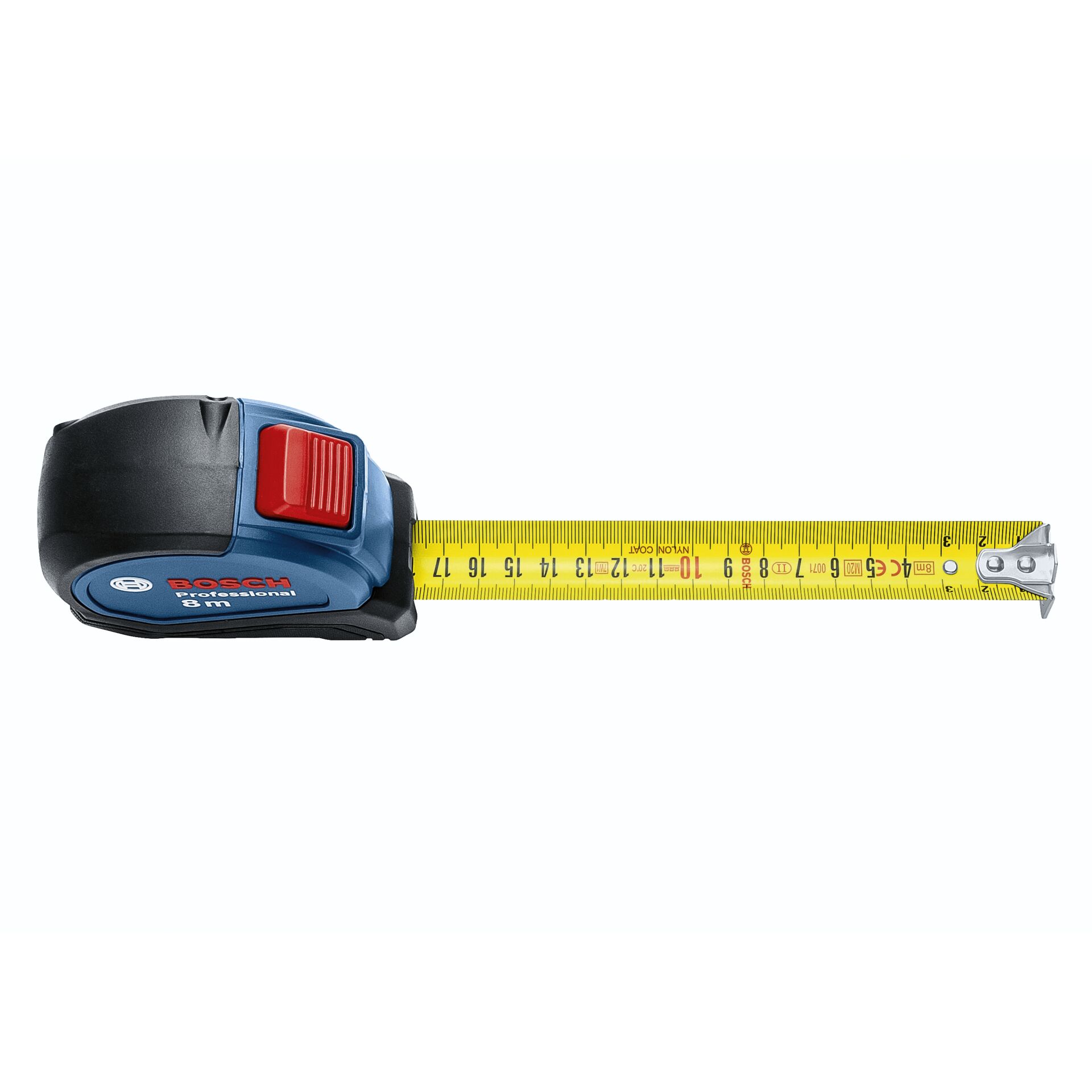 Das 8 m lange Maßband in robuster Ausführung wurde für eine lange Lebensdauer konzipiert. Es verfügt über ein robustes Gehäuse und ein 27 mm breites Band aus Bonded Nylon, das bis zu 2,7 m stabil ausgezogen werden kann. Das Maßband erlaubt einfaches Messen langer Strecken dank seines starken Magnethakens zur Befestigung an Metallflächen. Die Softgriffflächen und seine ergonomische Form unterstützen optimale Arbeitsbedingungen. Das 8 m lange Maßband ist mit einer Autolock-Funktion ausgestattet, die das Band für eine einfache und bequeme Verwendung feststellt.
