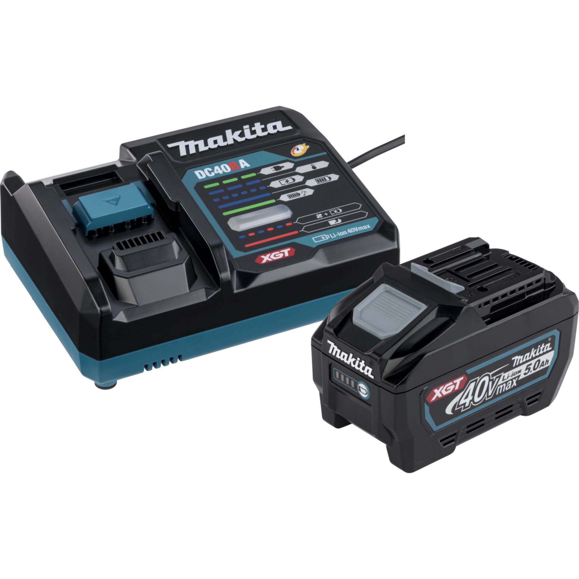 - 1x Akku BL4050F (5,0 Ah, 180 Wh, Li-Ion, Ladezeit ca. 50 min mit Schnellladegerät, 40V)