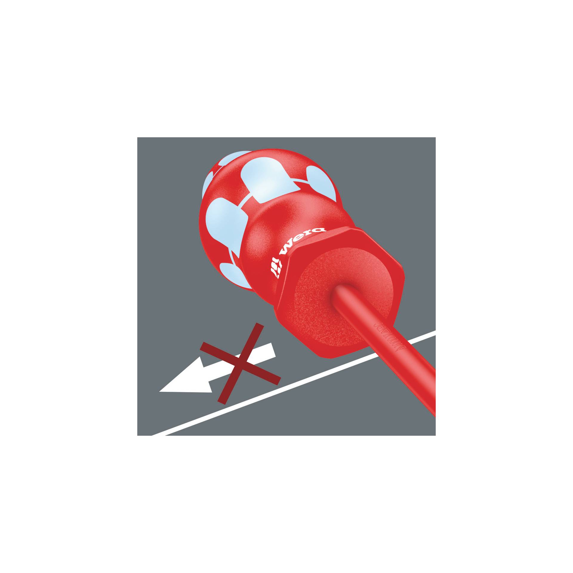 Hochwertiger Kraftform Plus VDE Schraubendrehersatz aus Edelstahl von Wera. Die Edelstahlwerkzeuge von Wera sind vakuumeisgehärtet und verfügen damit über die für Verschraubungen benötigten Härten und Festigkeitswerte. Der industrielle Einsatz ist ohne Einschränkungen möglich. Die Stückprüfung der Kraftform Stainless VDE Schraubendreher im Wasserbad bei 10.000 Volt gemäß DIN EN 60900 (IEC 60900) ermöglicht sicheres Arbeiten unter Spannung bis 1.000 Volt. Auch bei extremen Einsatzbedingungen ist durch die geprüfte Kaltschlagfestigkeit bei -40 °C die Sicherheit sichergestellt. Vorwiegend mit Lasertip: Die Lasertip-Spitze krallt sich im Schraubenkopf fest und verhindert das Herausrutschen aus dem Schraubenkopf. Mehrkomponentiger Kraftform Griff für schnelles und schonendes Arbeiten. "Take it easy" Werkzeugfinder mit Farbkennzeichnung nach Profilen und Größenstempelung - zum einfachen und schnellen Finden des benötigten Werkzeugs. Der Sechskantabrollschutz verhindert lästiges Wegrollen am Arbeitsplatz. Inklusive praktischem Rack zur übersichtlichen Aufbewahrung der Schraubendreher.