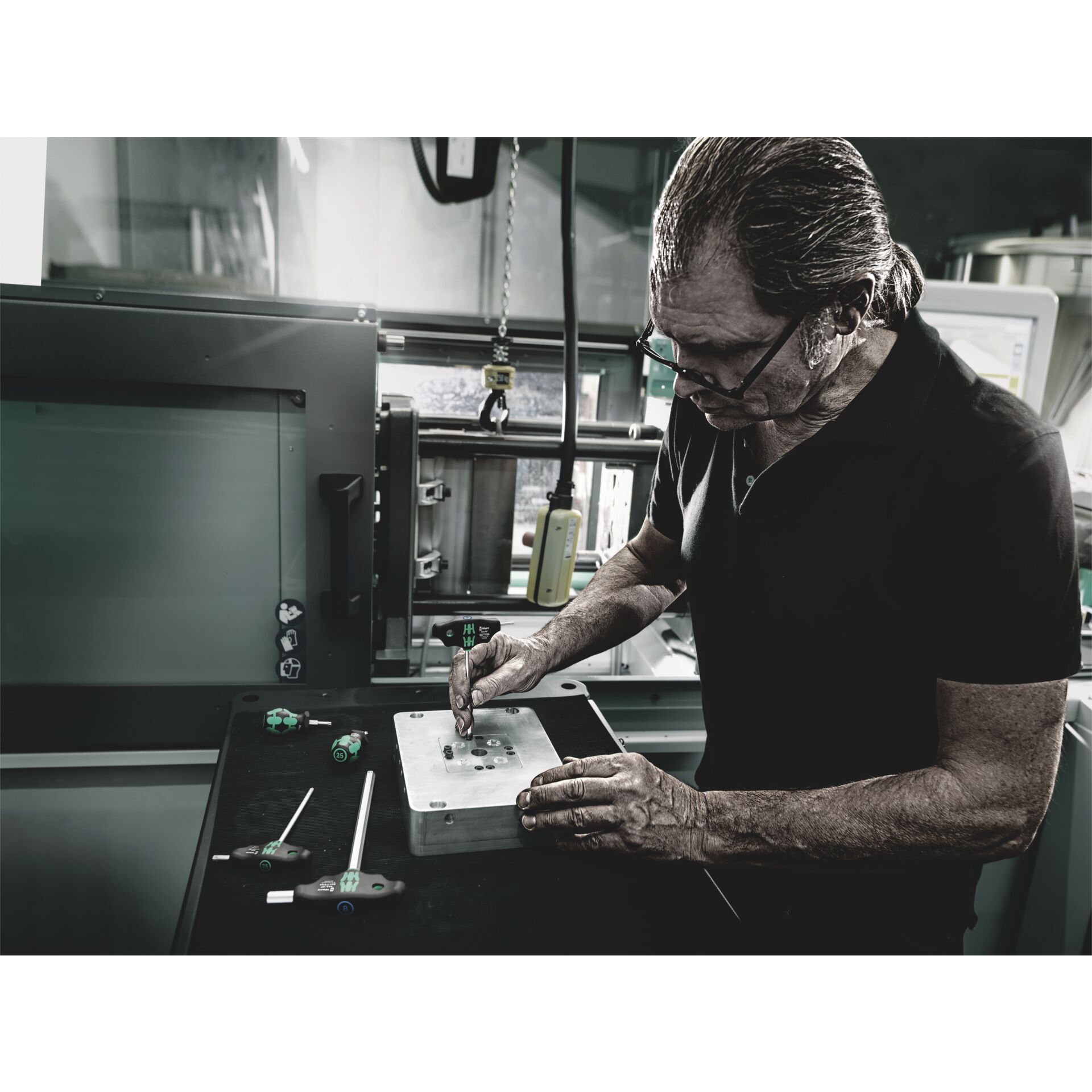 Die Klemmung der Innensechskant-Schraube auf der Werkzeugspitze wird durch eine federnde Kugel gewährleistet. Besonders hilfreich in schwer zugänglichen Arbeitsbereichen, wo man die zweite Hand nicht zum Festhalten der Schraube nutzen kann.