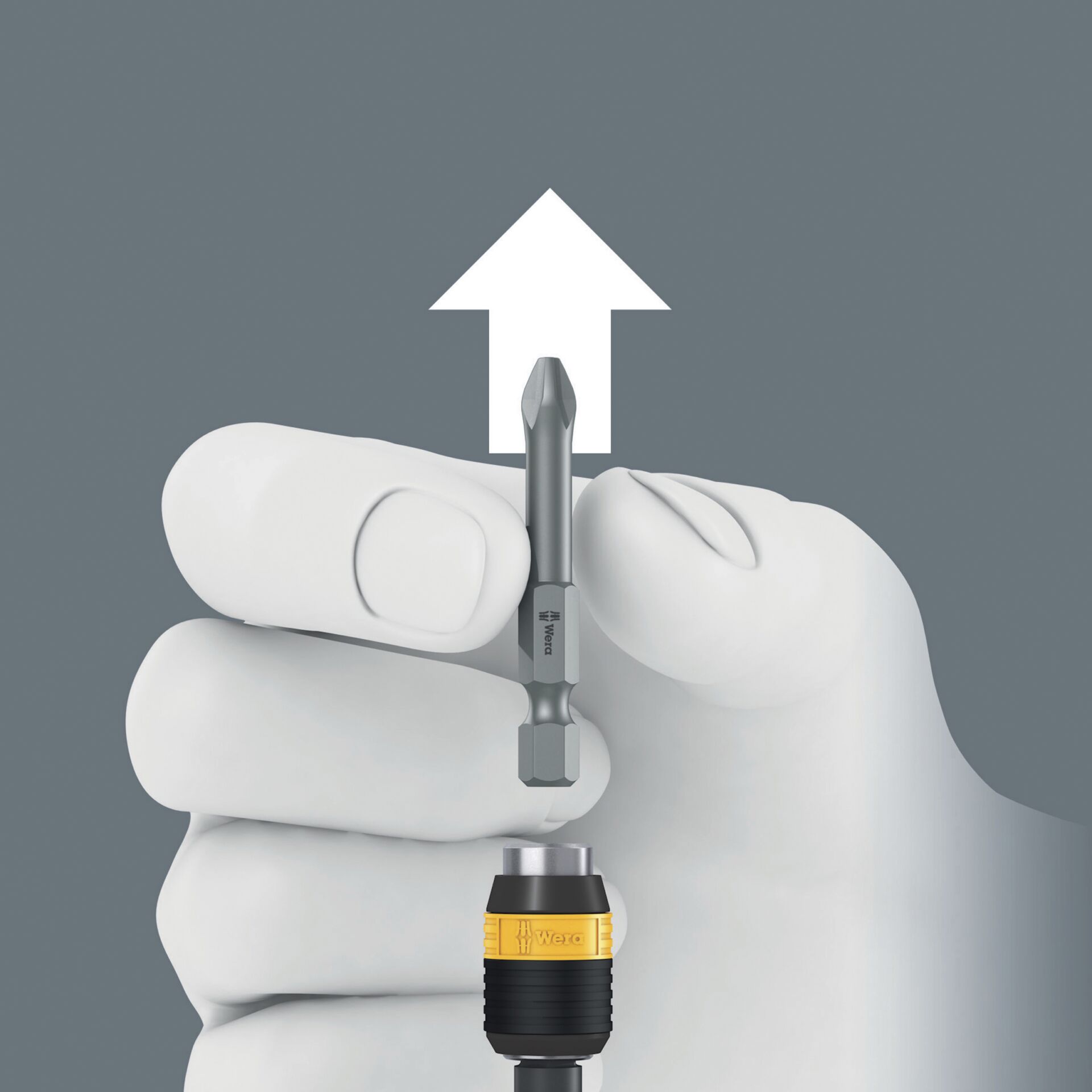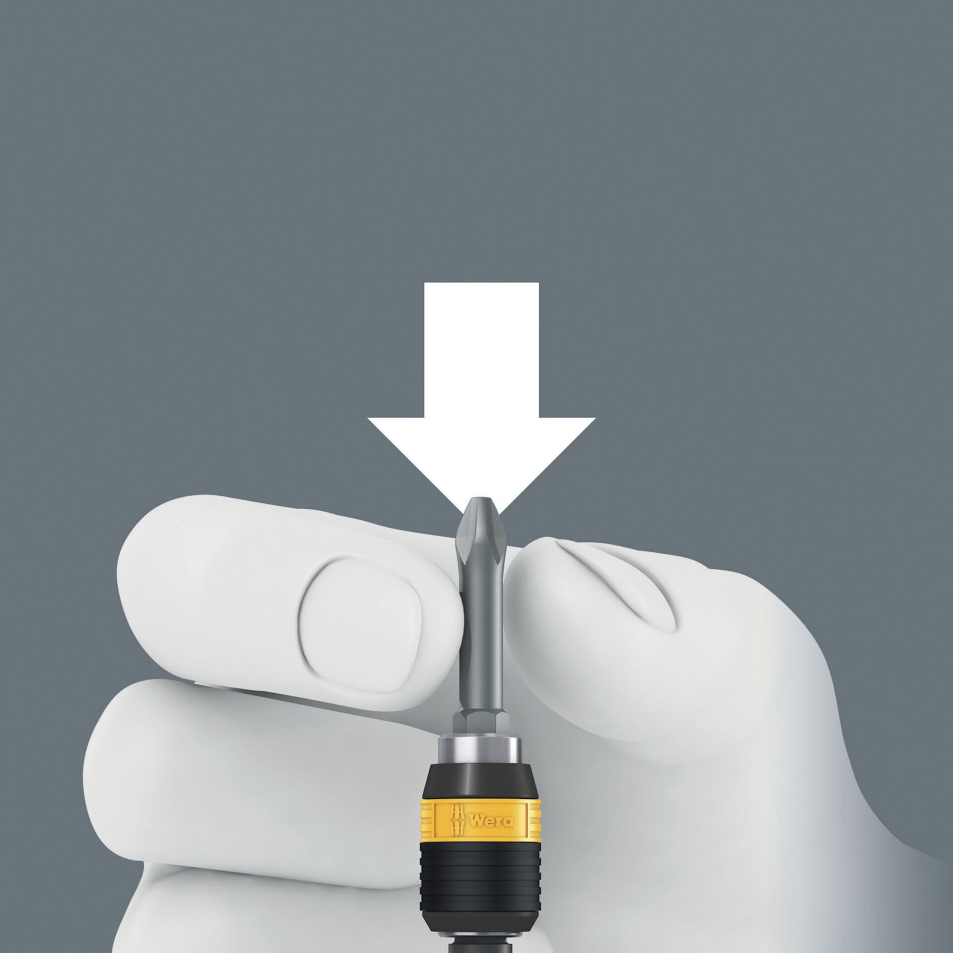 Elektrostatisch sicheres Wera Werkzeug. 16 Bits. Inklusive Handhalter 816 R ESD, mehrkomponentig für hohe Arbeitsgeschwindigkeiten und besonders ergonomisches Verschrauben. Sicherer Schutz vor elektrostatischer Energie und damit verbundenen Schäden. Kompaktes Set für beide Verschraubungsarten Hand und Maschine. Einfache Sortierung nach Profilen und Größen. Einfache Bit-Entnahme und -Rückführung.