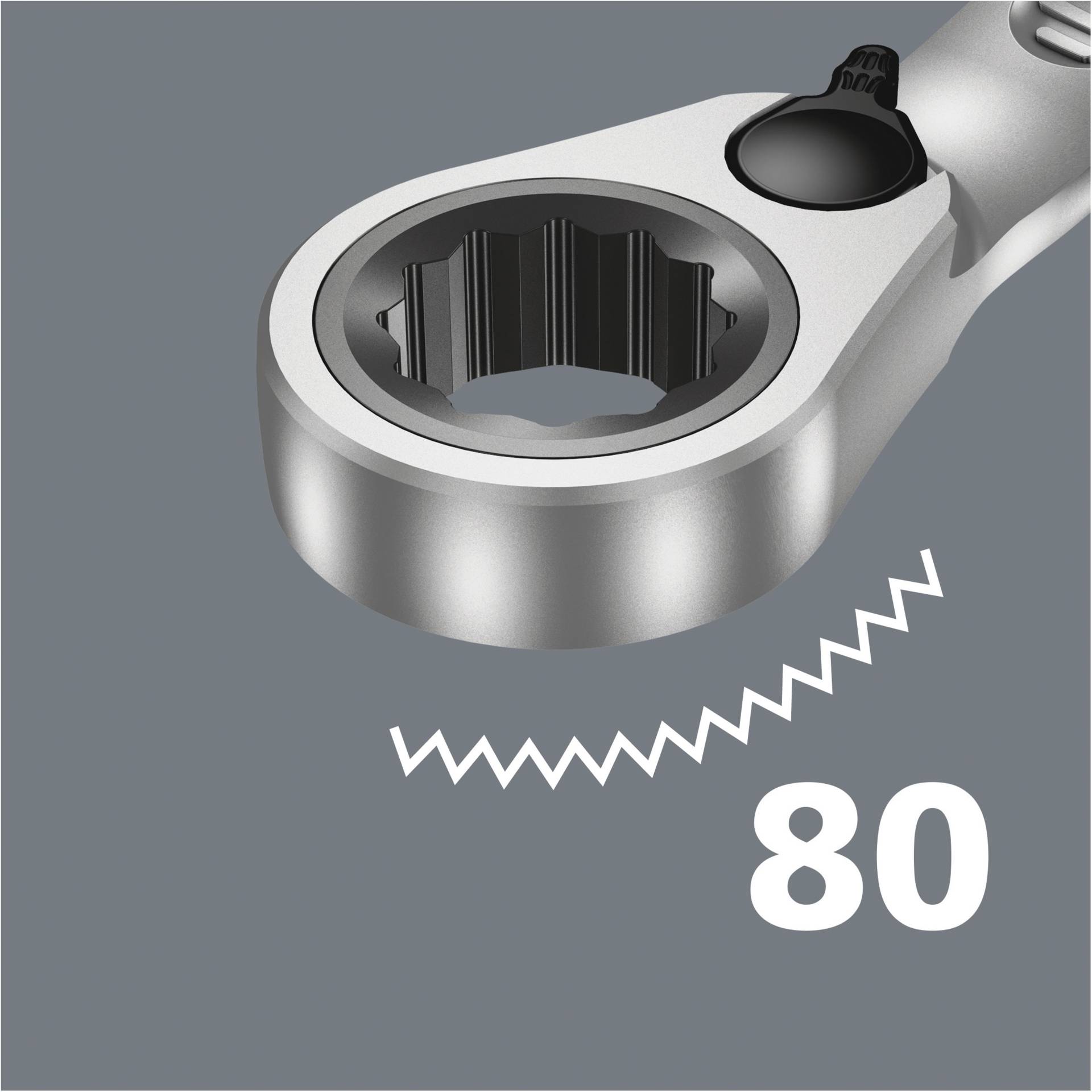 Die Doppelsechskantgeometrie sorgt für die formschlüssige Verbindung mit Schraube oder Mutter und damit ebenso für die Verringerung der Abrutschgefahr. Der geringe Rückschwenkwinkel von nur 30° auf der Maulseite vermeidet zeitintensives Wenden des Schlüssels beim Schrauben. Die umschaltbare Ratschenmechanik auf der Ringseite mit hoher Feinverzahnung (80 Zähne) sorgt für hohe Flexibilität auch in engen Bauräumen. Hörbar präzise Ratschenmechanik. Das robuste zweiteilige Rast-Element ermöglicht darüber hinaus eine extreme Standfestigkeit. Mit um 15° abgewinkelter Ratschenseite für sicheres Arbeiten bei hohen Drehmomenten. Die spezielle Schmiedegeometrie sorgt für hohe Drehmomentübertragung und hohe Biegesteifigkeit.