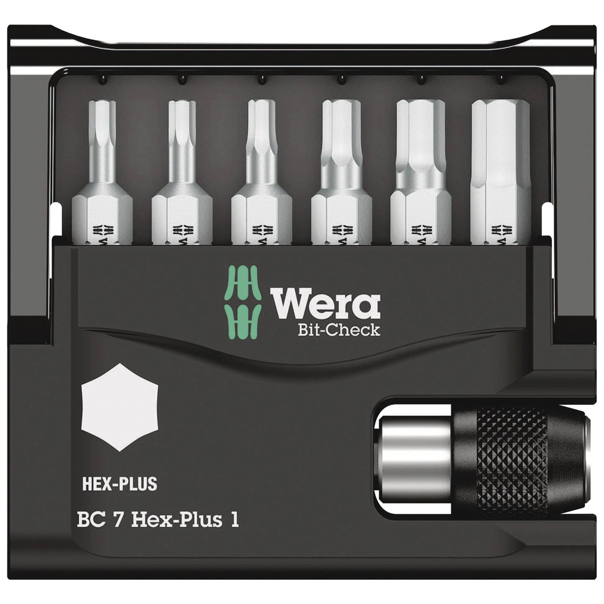 Robuster Bit-Check von Wera. Bit-Checks ermöglichen einen schnellen Überblick über das vorhandene Werkzeug. Nicht benötigte Bits werden einfach ins Sortiment zurückgesteckt und gehen nicht verloren. Einfacher Transport z.B. in der Hemdtasche. Das Hex-Plus-Profil bietet größere Anlageflächen im Schraubenkopf. Die Kerbwirkung wird dadurch auf ein Minimum reduziert, die Zerstörung des Schraubenkopfes nahezu eliminiert.Zähhart, für den universellen Einsatz. Inklusive Universalhalter für die Aufnahme von Bits mit 1/4"-Außensechskantantrieb nach DIN ISO 1173-C 6,3. Mit Schnellwechselfutter für schnellen Bit-Wechsel. Der starke Dauermagnet hält die Bits bombenfest.